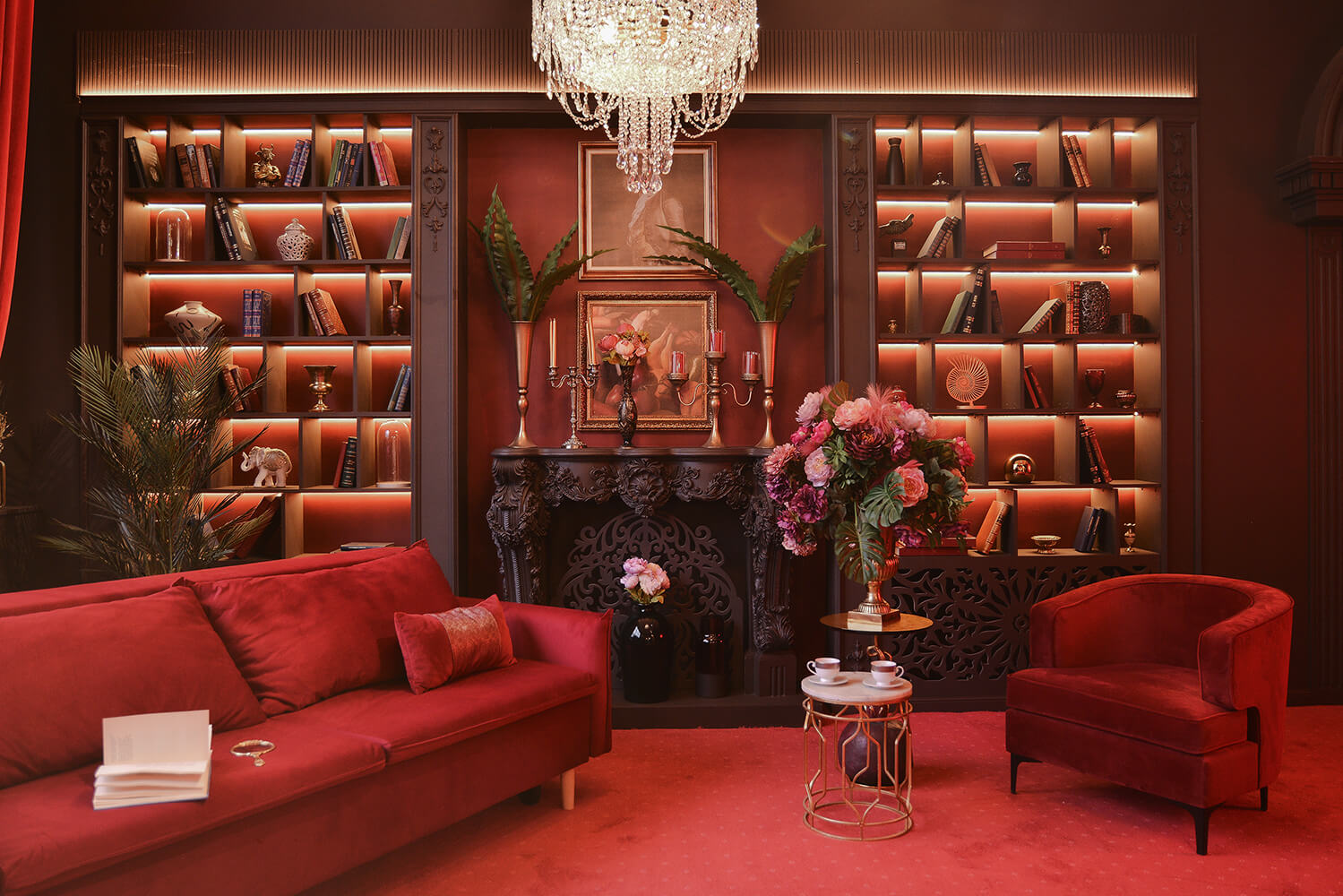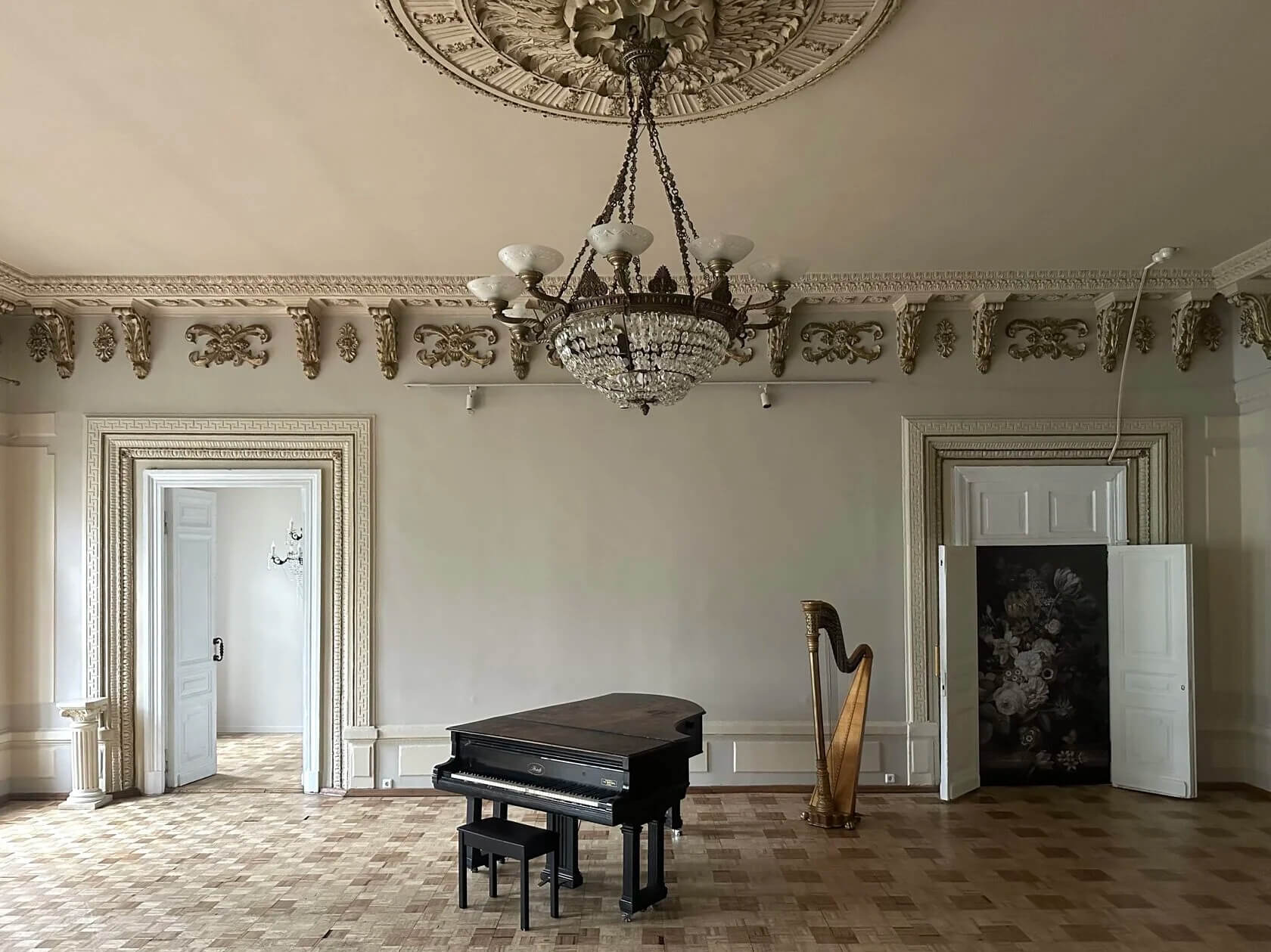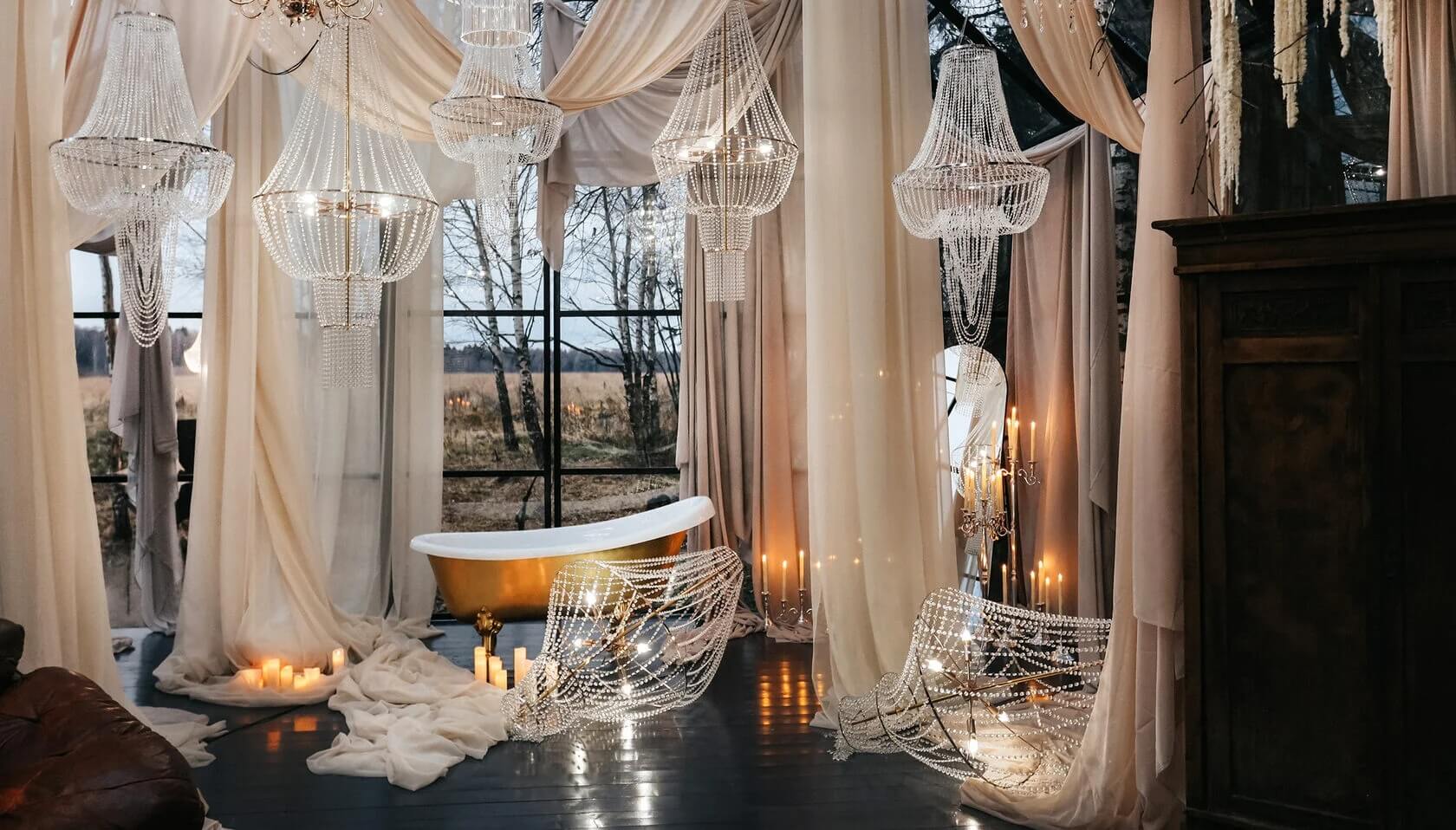 Например, зал «Большой» — это квинтэссенция роскоши. В нем доминирует золотой цвет, много тяжелых люксовых элементов, а сам интерьер в целом оформлен под старину. Поэтому стоит как следует подготовиться к съемкам, продумать образ, идею — да и вообще решить, готовы ли вы к такому интерьеру.