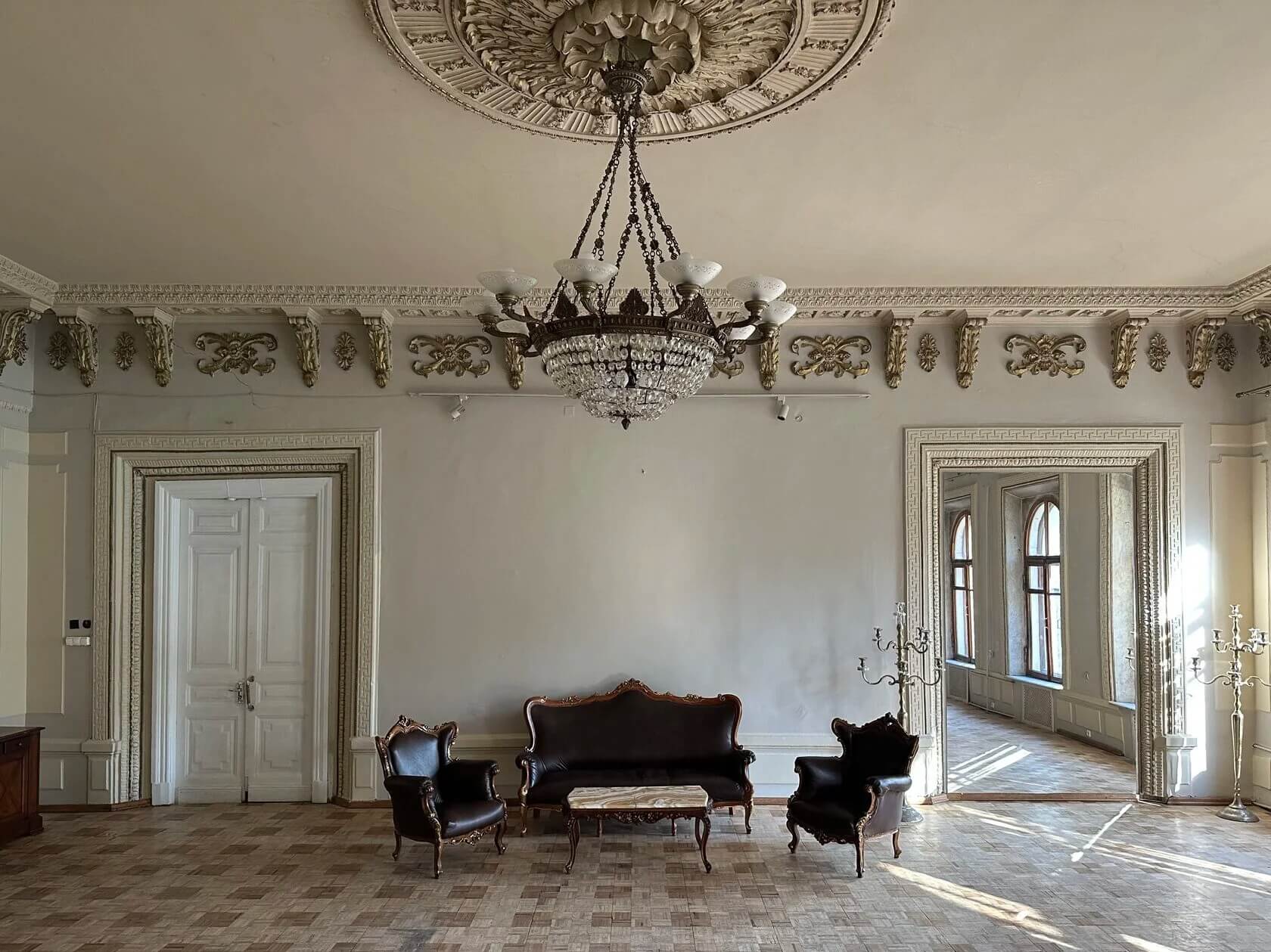Если хочется получить более свободные, близкие к современности фотографии, имеет смысл остановиться на зале «Малый». Это тоже люкс, но уже не такой тяжелый. В нем больше свободы и простоты — хотя тоже есть массивные бары, крупные столы и обращающая на себя внимание люстра.