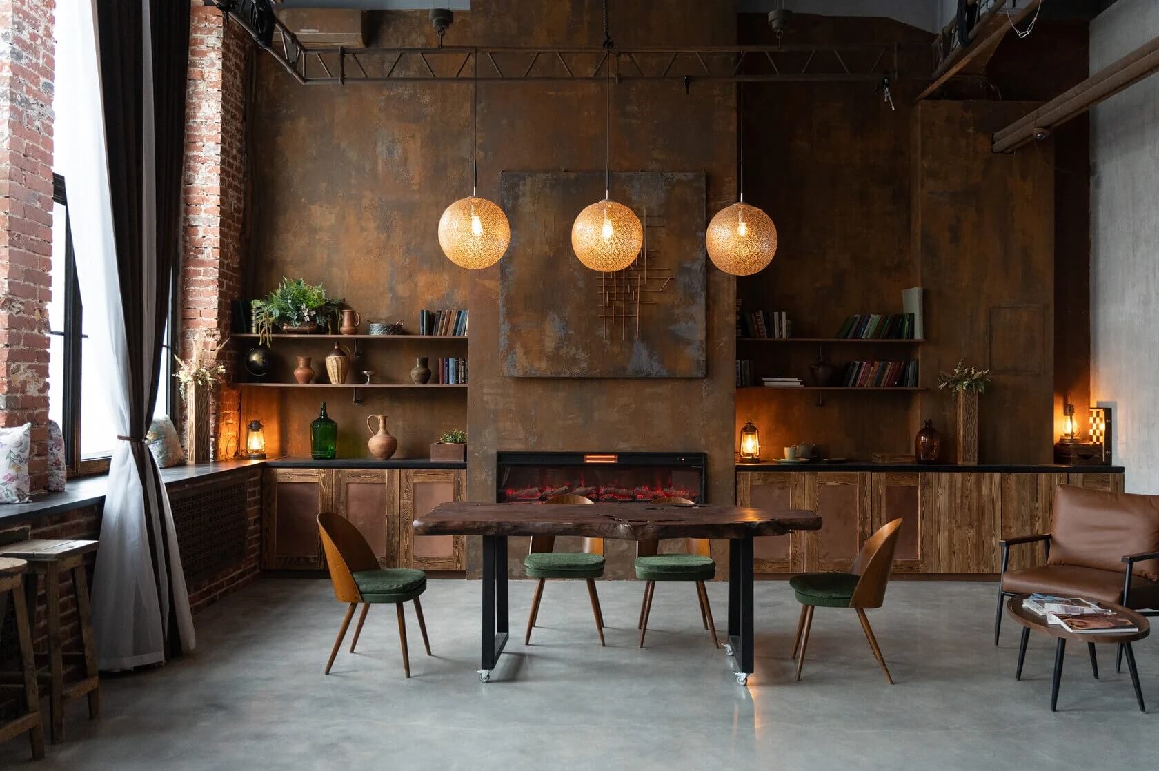 Так, зал «Шале» — это типичный загородный дом в Альпах: уютный, в своем роде романтичный и пасторальный и вместе с тем очень спокойный. Здесь доминирует коричневый цвет, много дерева и кирпича, в оформлении — обилие вязаных вещей, текстиля и кожи. Это отличное решение, к примеру, для уютной семейной съемки.