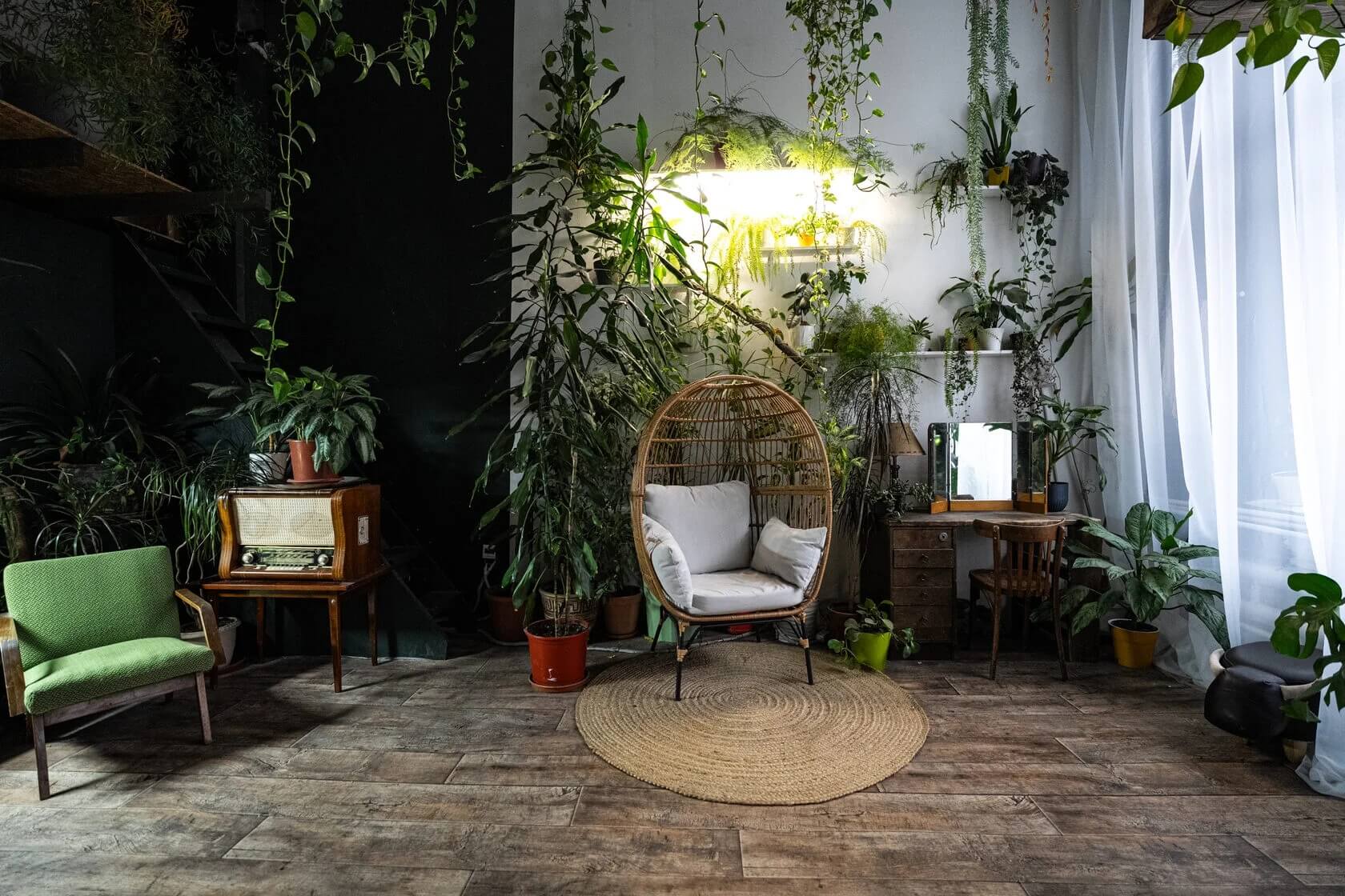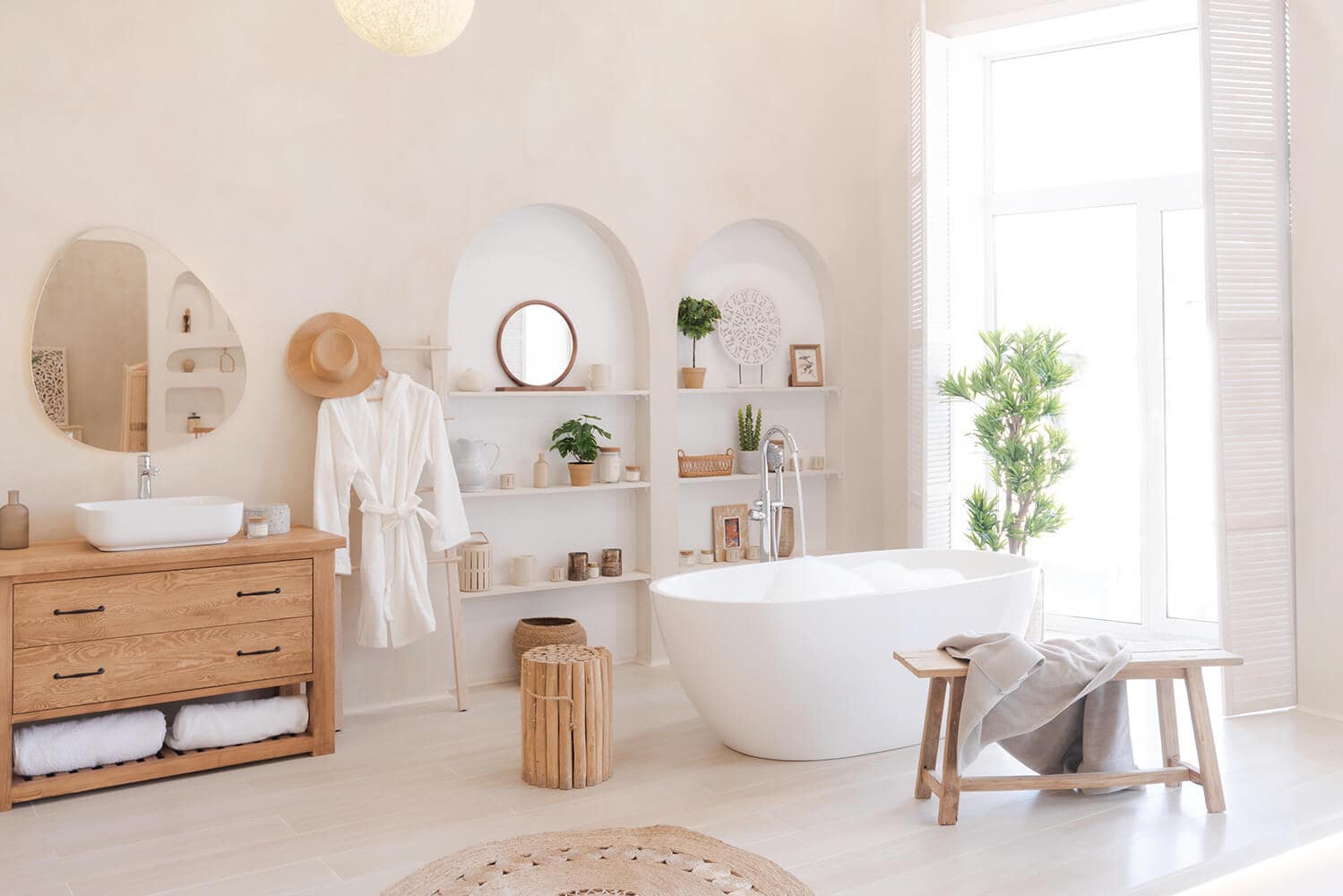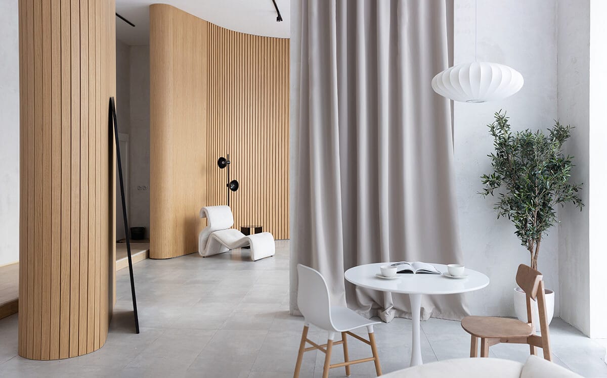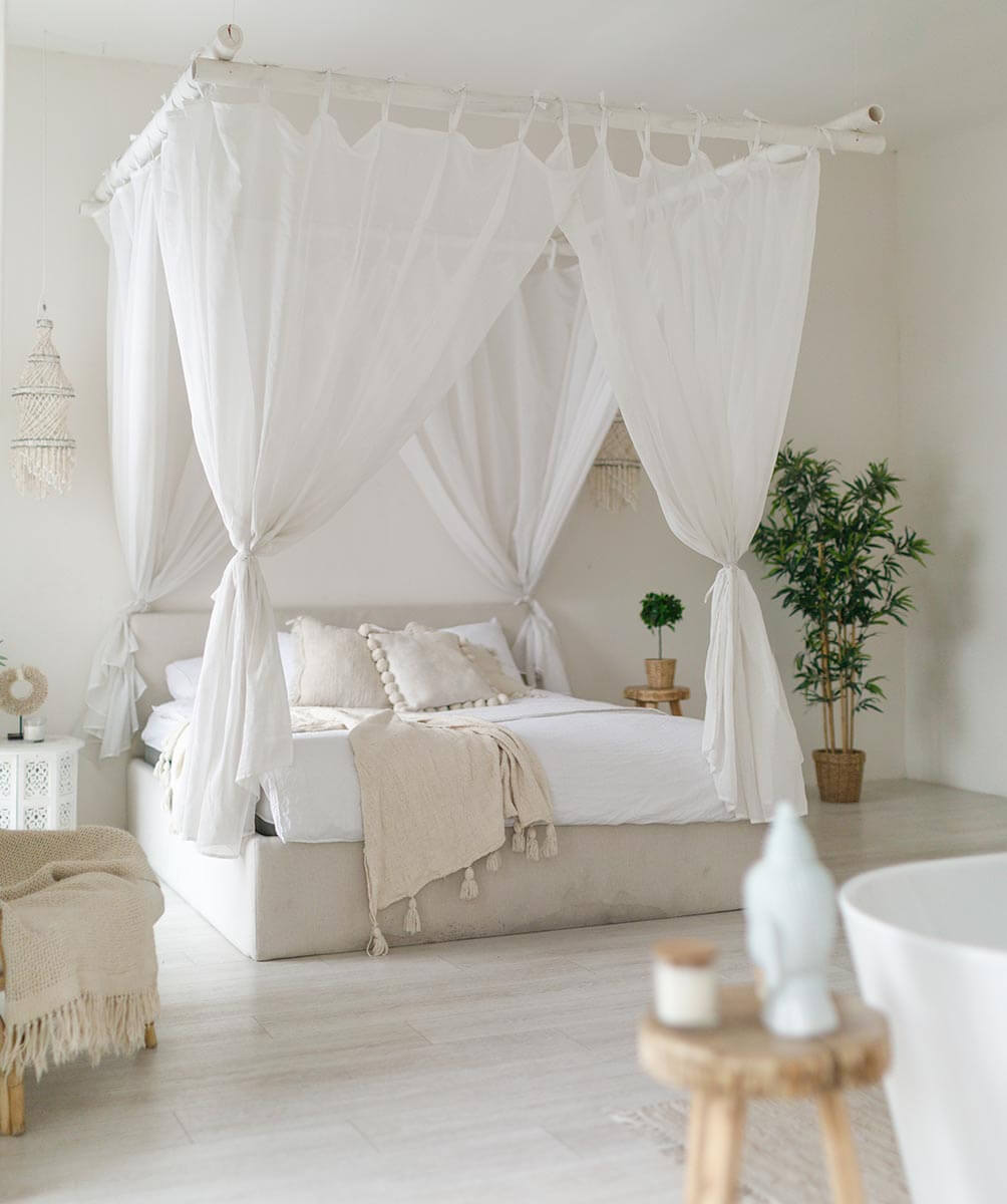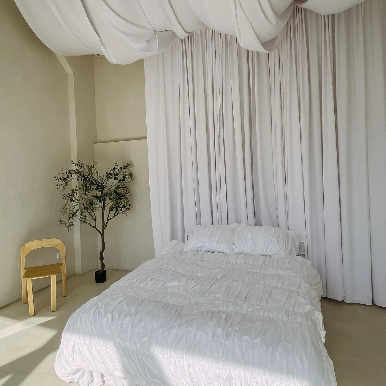 А вот другая локация — «Убуд» — смотрится совершенно иначе. Если вы ищете белую фотостудию, выбирайте именно ее — не прогадаете. Различные оттенки белого хорошо сочетаются со светлой древесиной и оттеняются небольшими вкраплениями зелени. Само название — это напоминание об одном из самых очаровательных городов Индонезии. «Убуд» — хорошая локация для свадебных съемок, для одиночной фотосессии или лав-стори. Кстати говоря, это одна из немногих удобных фотостудий с ванной, которые можно найти в городе.