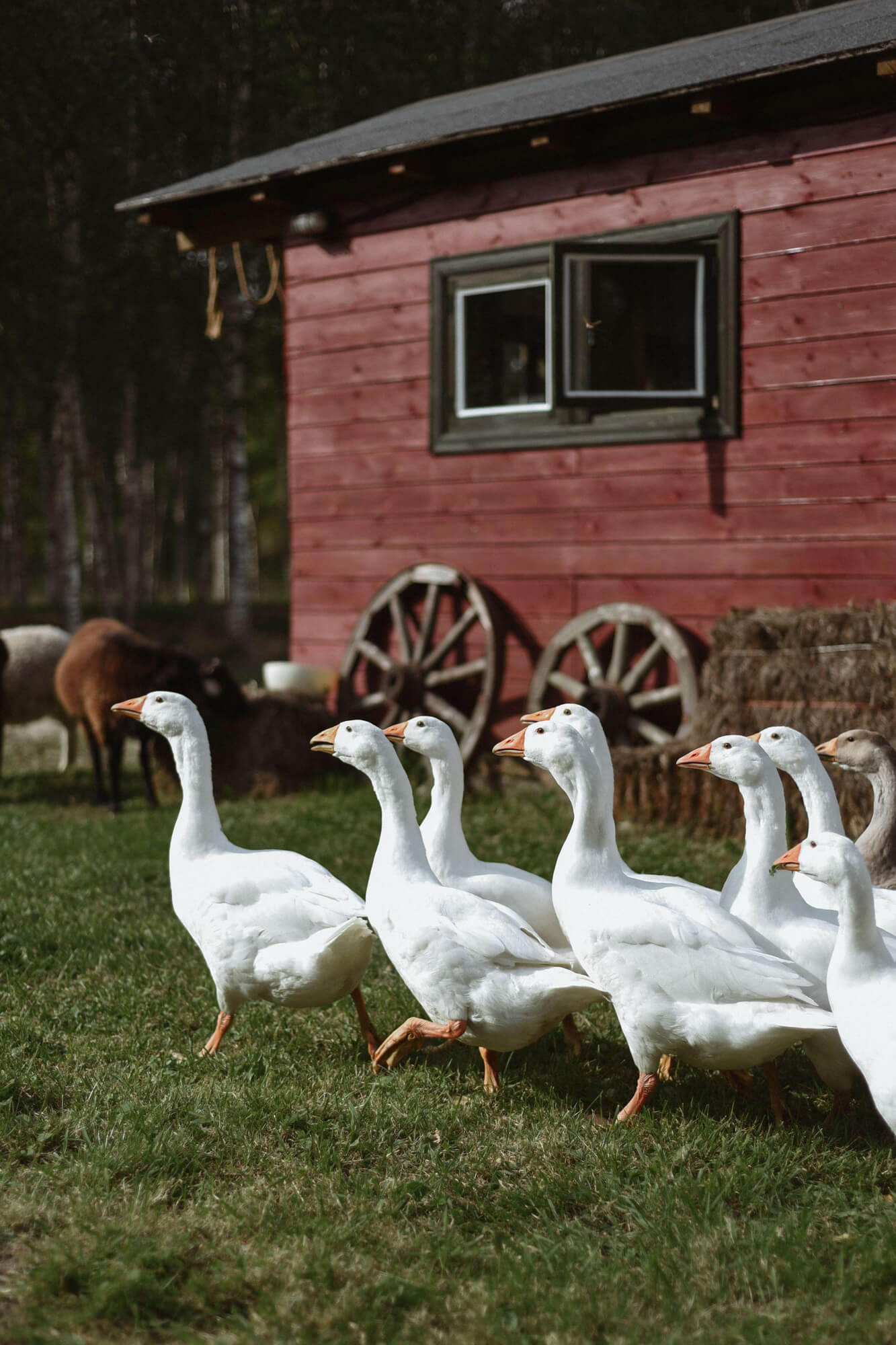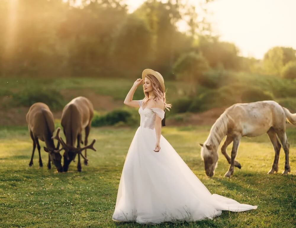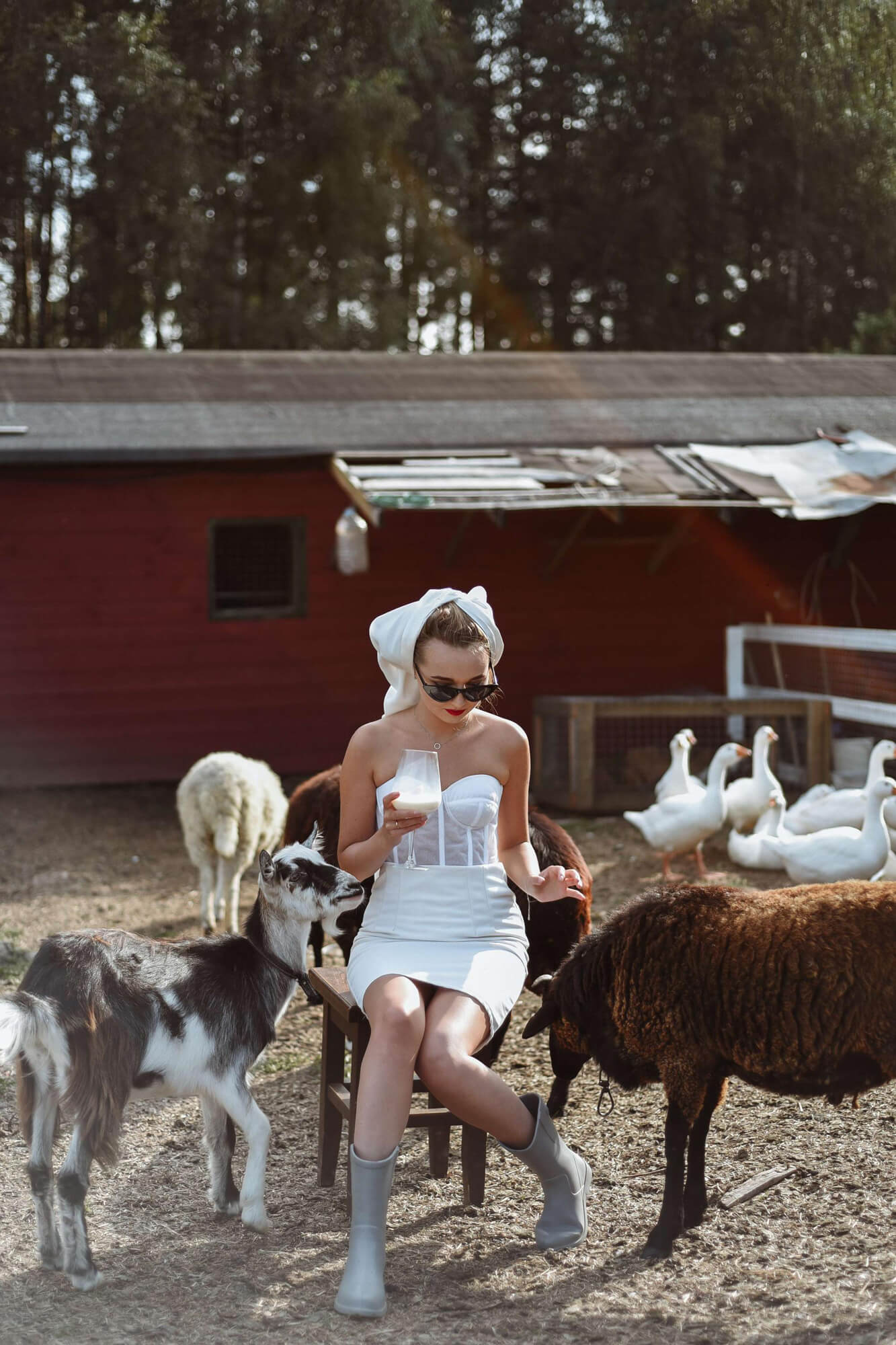 Но самая яркая, на мой взгляд, точка, подобную которой так трудно найти в столице, — это локация с животными. Настоящая кантри-ферма буквально в нескольких десятках километров от Москвы! Козы, кролики, даже гуси — полное погружение в атмосферу! Пожалуй, лучше идеи для летних фотосъемок вы не найдете. А зимой можно арендовать упряжку с хаски: собаки тоже живут на ферме.