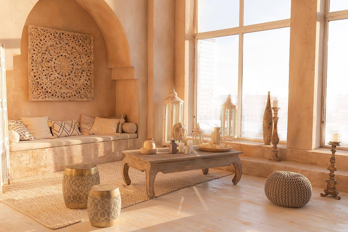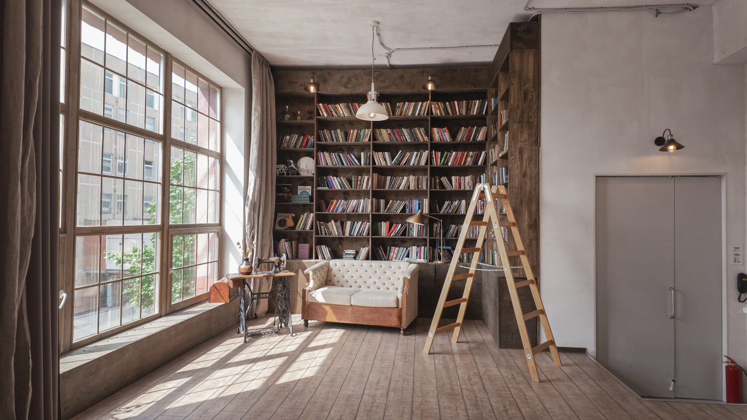 - большие деревянные окна, сквозь которые естественный свет проникает внутрь;