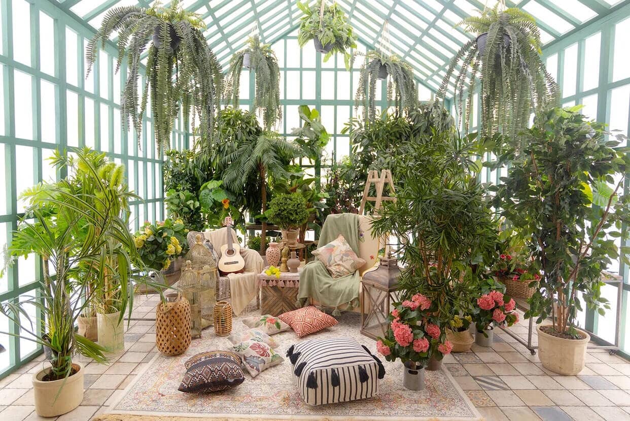 Vozduh.Studio — уникальное творческое пространство со стильными декорациями. Здесь обустроено больше десяти фотозон, и большинство из них располагается на воздухе. Закрытой является только оранжерея, однако сама постройка возведена из стекла и тонких металлических перекрытий — то есть освещение здесь такое же естественное, как на улице.