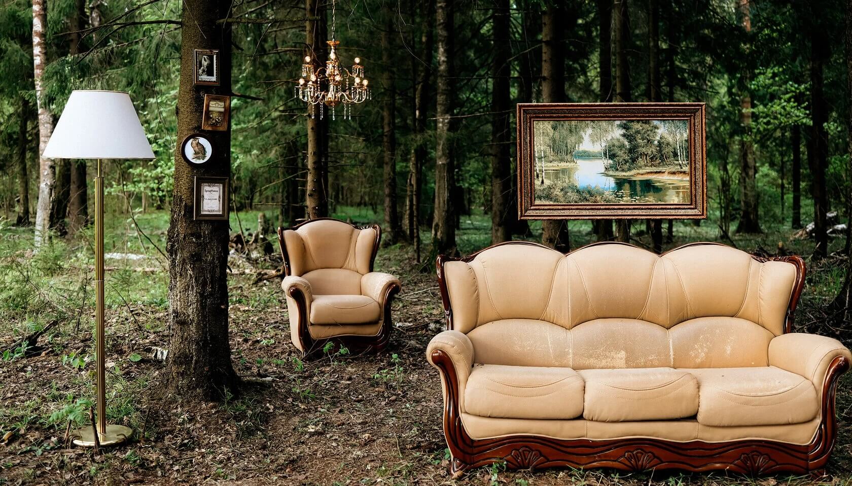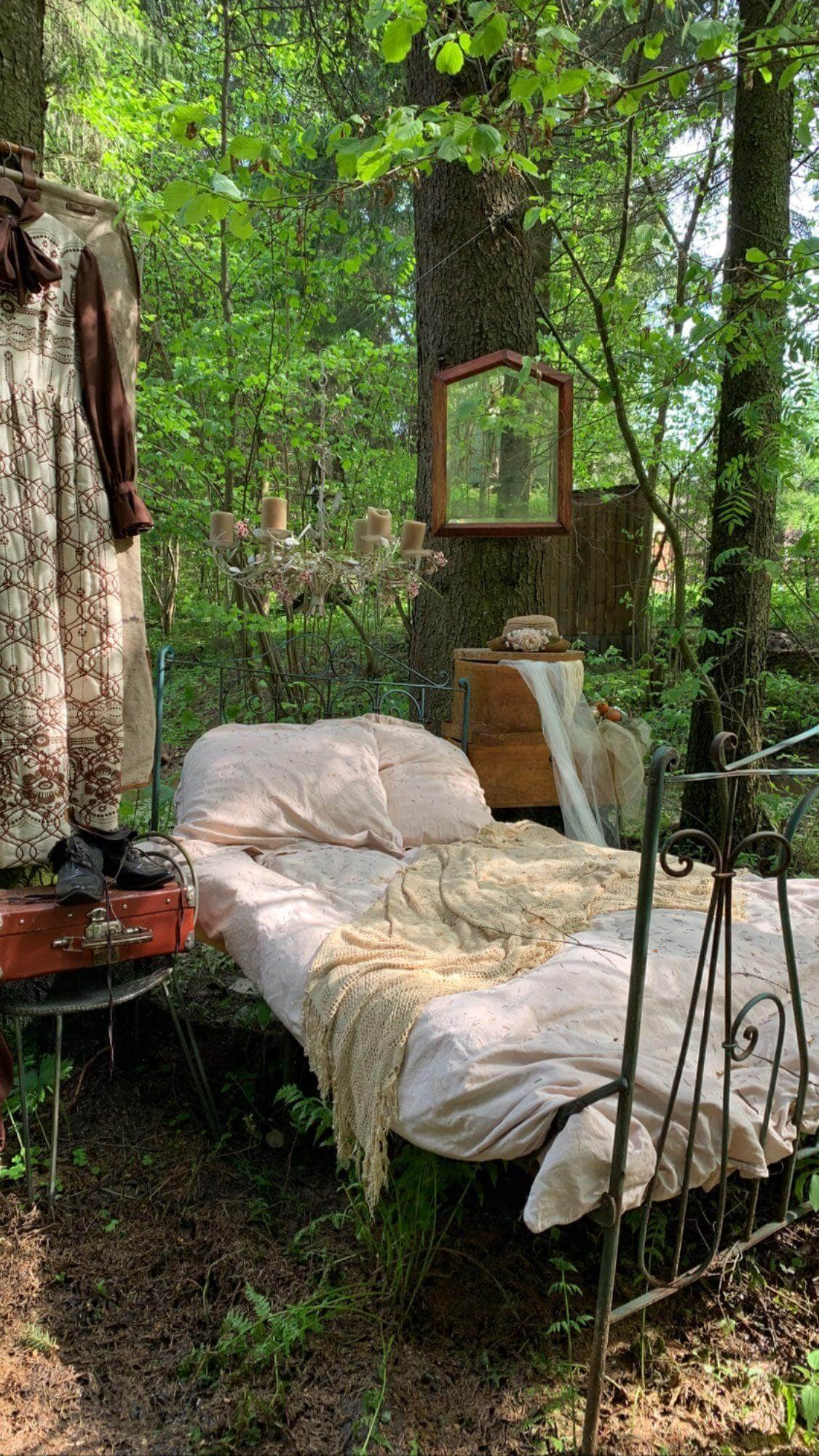 - кровать в лесу;