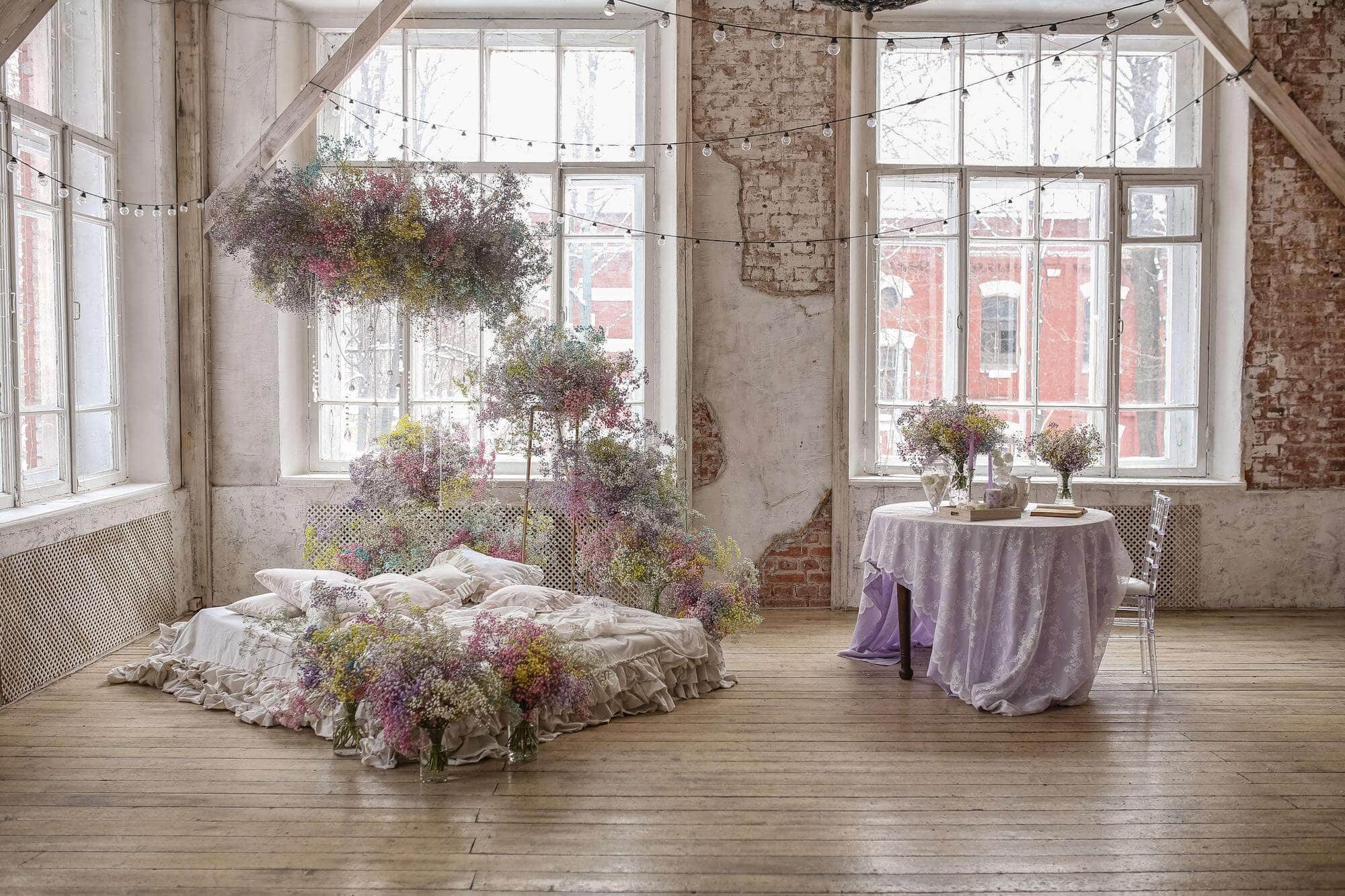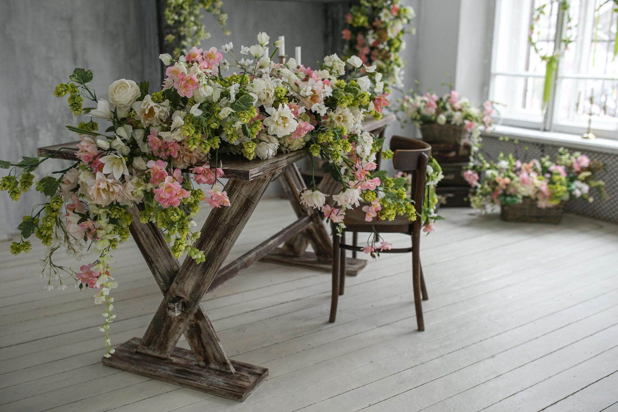 - большую веранду с обеденным столом и цветочной фотозоной;