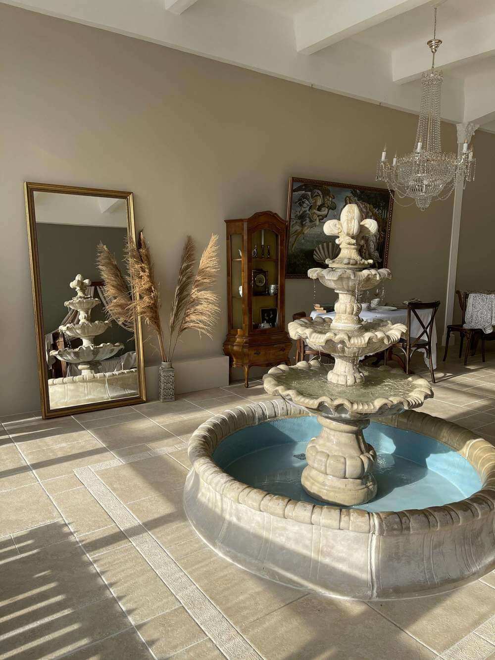 Другой зал — Rome — стилизован под Италию. Здесь отличительные особенности — рабочий фонтан, винтажная мебель и люстра, высоту которой можно менять.